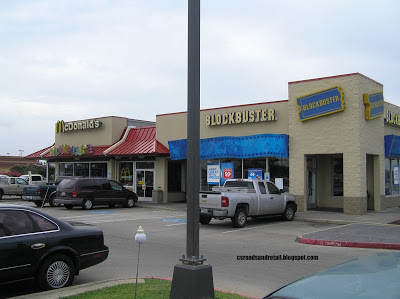 I think it would be interesting if the Blockbuster side was filled in with some sort of new concept...now, I know that McDonald's divested itself from Chipotle in 2006, but sure would be awesome to see it occupy the other side, provide some competition to the nearby Freebirds, as well as giving those who don't like McDonald's another option...or perhaps another seemingly wild concept (McDonald's + haircuts?)...but in all likelihood it will be remodeled into an expansion of McDonald's.